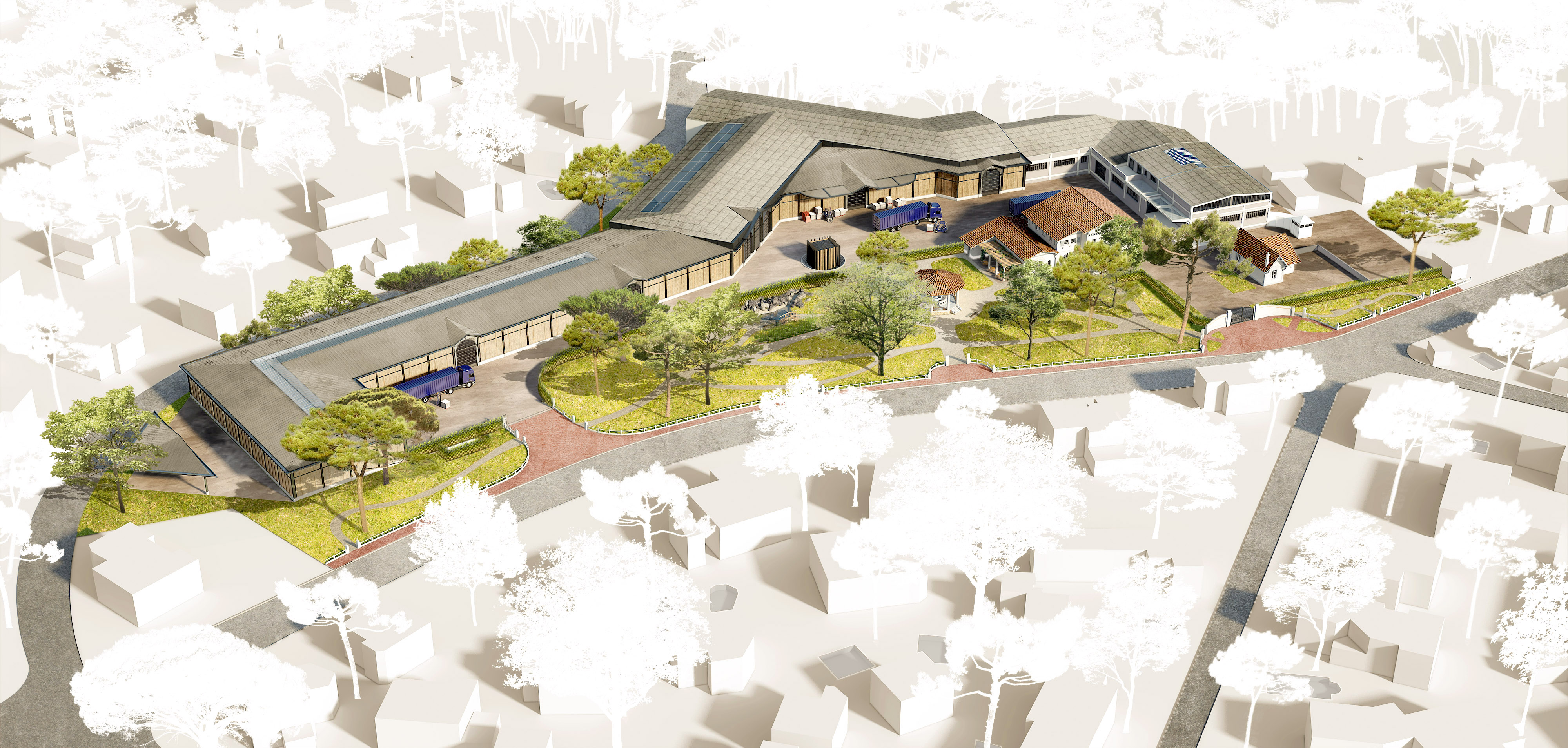 L’entreprise souhaite étendre ses capacités de stockage sur site et requalifier l’ensemble des façades donnant sur le parc des Abatilles dans un souci d’intégration avec son environnement proche.